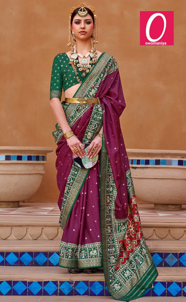 Patola Silk Saree in Mulberry Zari Weaving with Green Border & Unstitched Blouse